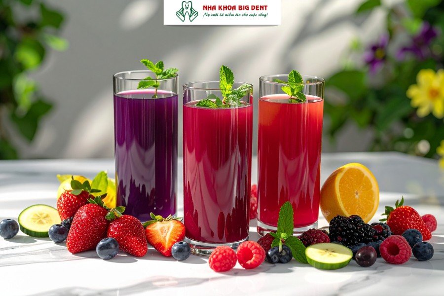 Nước trái cây giúp bổ sung vitamin cần thiết cho cơ thể và hỗ trợ sức khỏe tổng thể. Tuy nhiên, nên ưu tiên các loại ít axit và tránh những loại có hàm lượng axit citric cao như cam hoặc chanh trong giai đoạn răng nhạy cảm để hạn chế ê buốt và bảo vệ men răng.